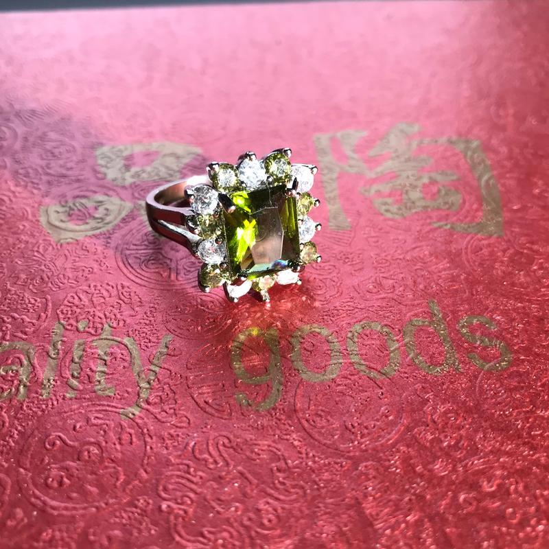 Кольцо с зеленым и белыми цирконами Медицинский сплав