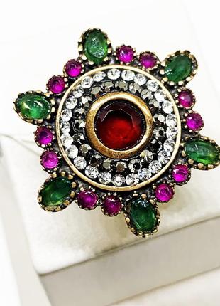 Серебро 925° Вставки: изумруд,сапфир, рубин,корунд,медь,агат. Средний вес ― 10,05 грамма. Размер кольца - 18.