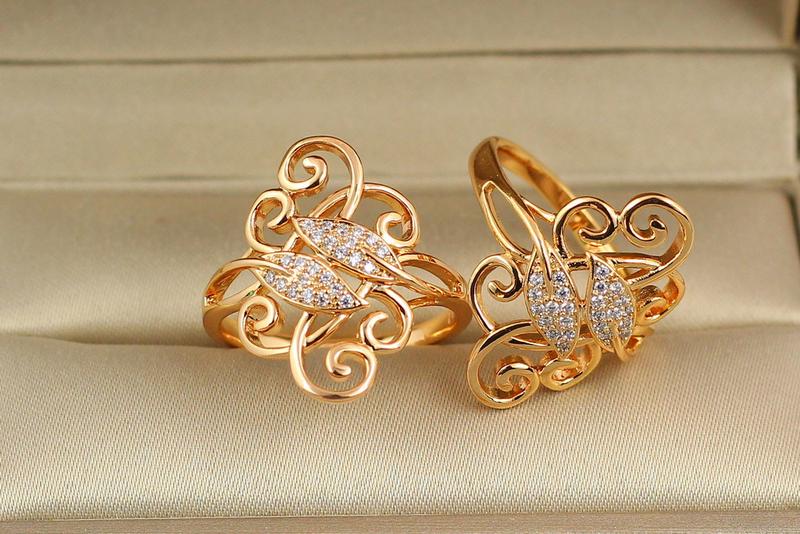 Кольцо xuping jewelry перстень два листика в завитках р 17 золотистое