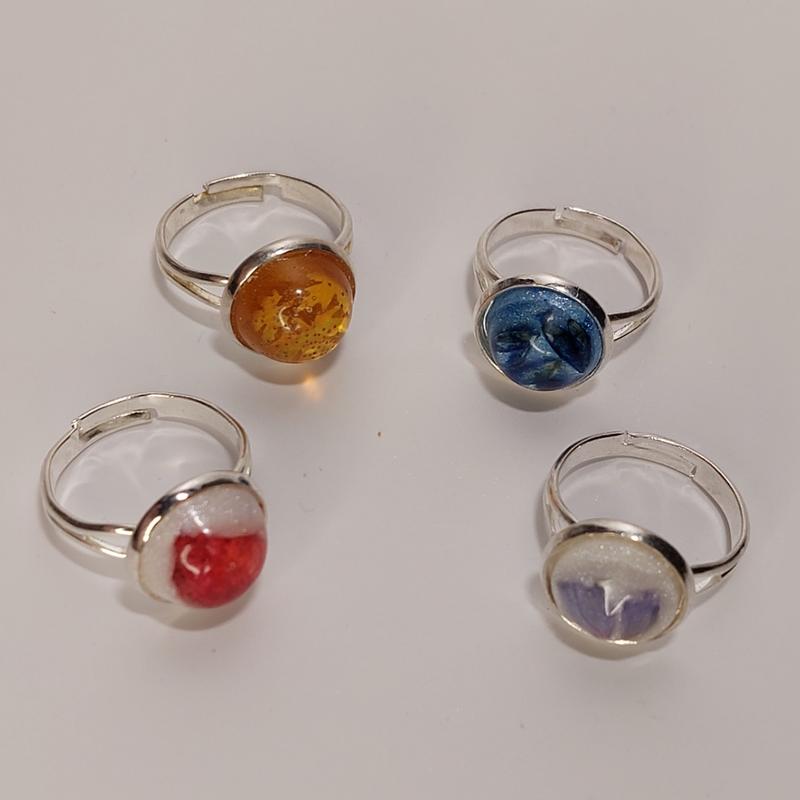 кільце ручної роботи з ювелірної смоли та живих квітів, регулюється.