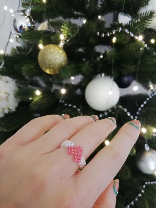 Колечко з бісеру ''Сердечко''. Чудово доповнить ваш образ. Можна виконати в будь яких кольорах . Більше робіт у моєму профілі.