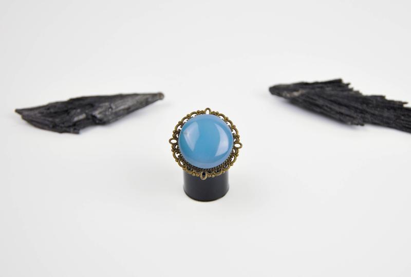 Женское винтажное кольцо с голубым халцедоном. круг. размер регулируется. бронза. бижутери...