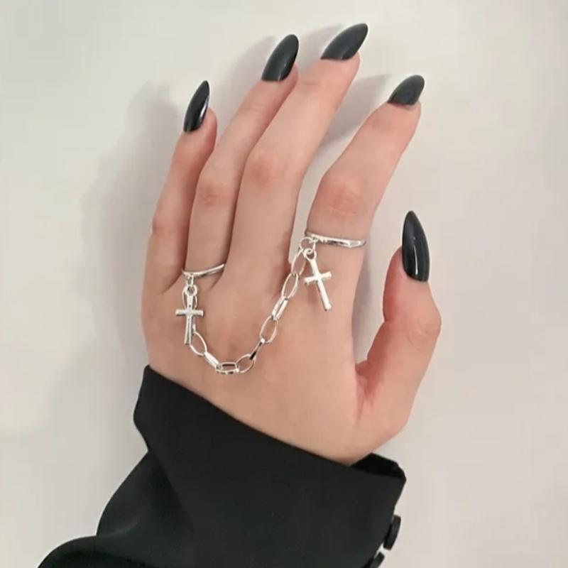 Набор колец колечек 2 шт с цепочками крестиками панк готика
