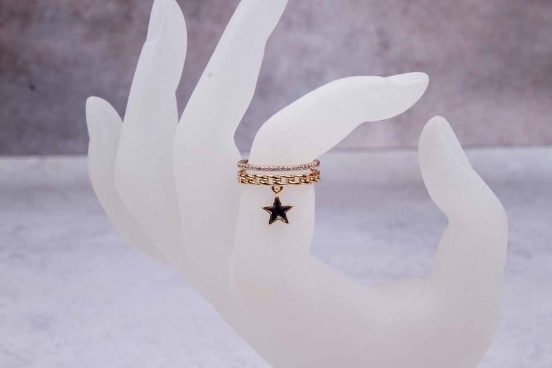 Чудова сучасна каблучка у вигляді ланцюжка з підвіскою зірочка. Позолота 18к, не викликає алергійних реакції, не темніе, не боїться води. Чудова альтернатива дорогим ювелірними прикрасам Розмір регулюється Є розмір 16-17 Ширина кільця 5 мм, ширина підвіски 6 мм Якщо потрібно зробимо додаткові фото Товар новий, в наявності Відправка на протязі 24 годин