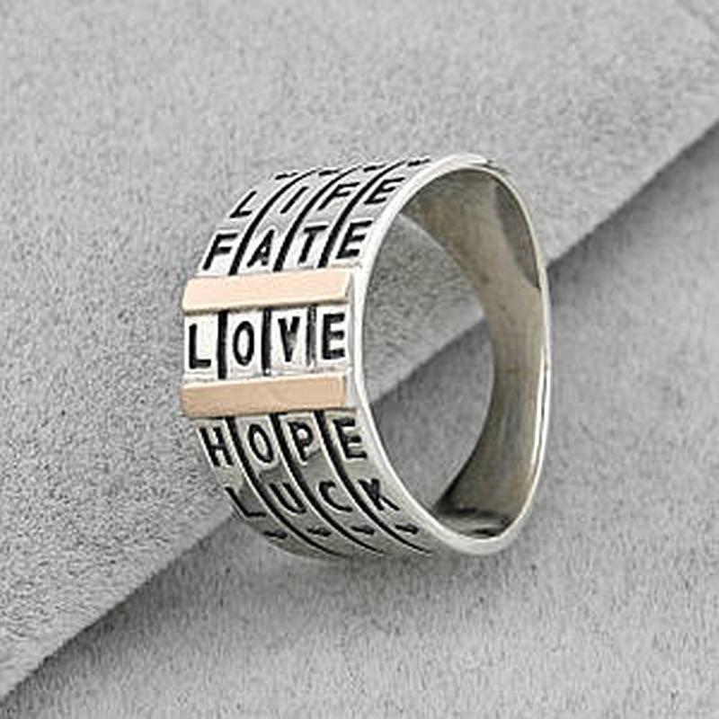 Каблеск серебряный женский с золотом Love Life Fate Hope Luck БС726 размер 18.