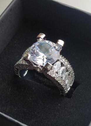 Кольцо новое Вес 6 грамм Размер 17.5 мм Камень циркон Материал Металл Покрыт серебром.