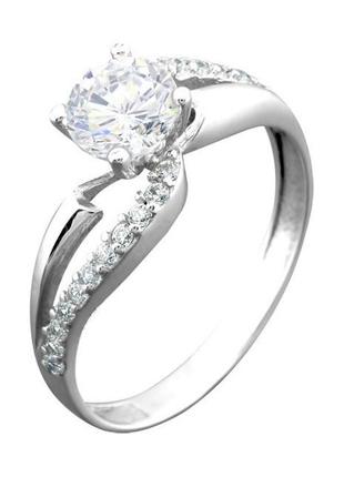 Срібне кільце ЛК-0077 це класика ювелірної прикраси. Повністю всі колечко покрита родієм для захисту від потемніння, це надає більшого блиску металу. Шинку кільця усипана дрібними фіанітами які сяють при денному та штучному освітленні, а в центральній частині кільця розташований камінь круглої форми.
