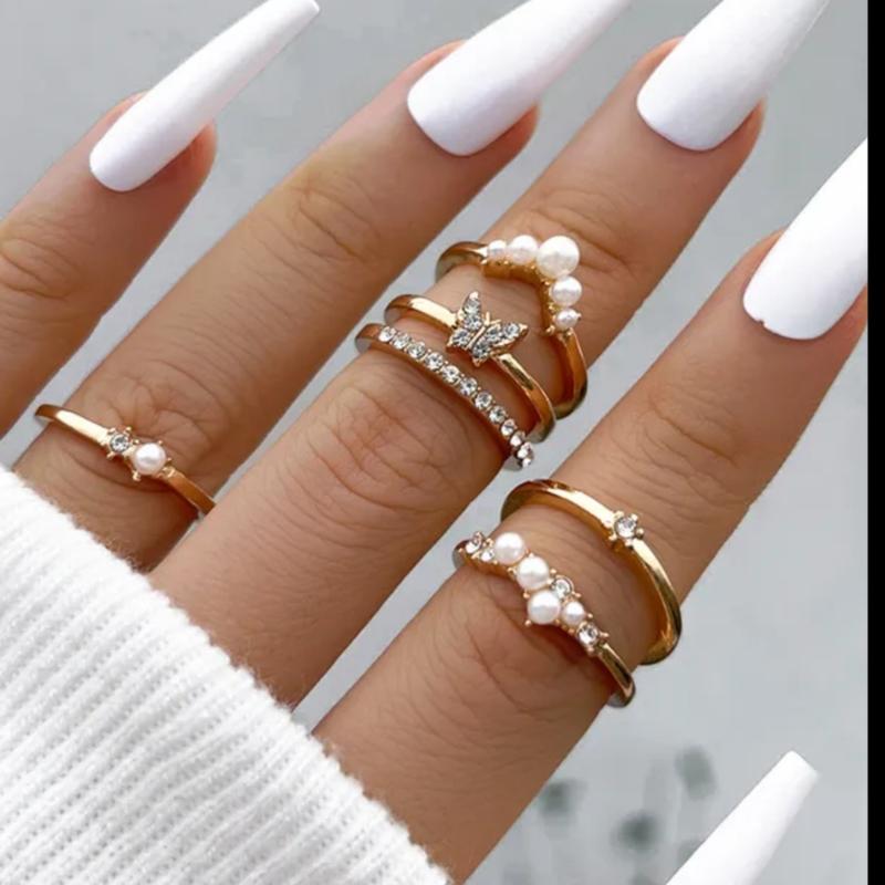 Набор стильных модных колец жемчуг камни бабочка 🦋💍💎