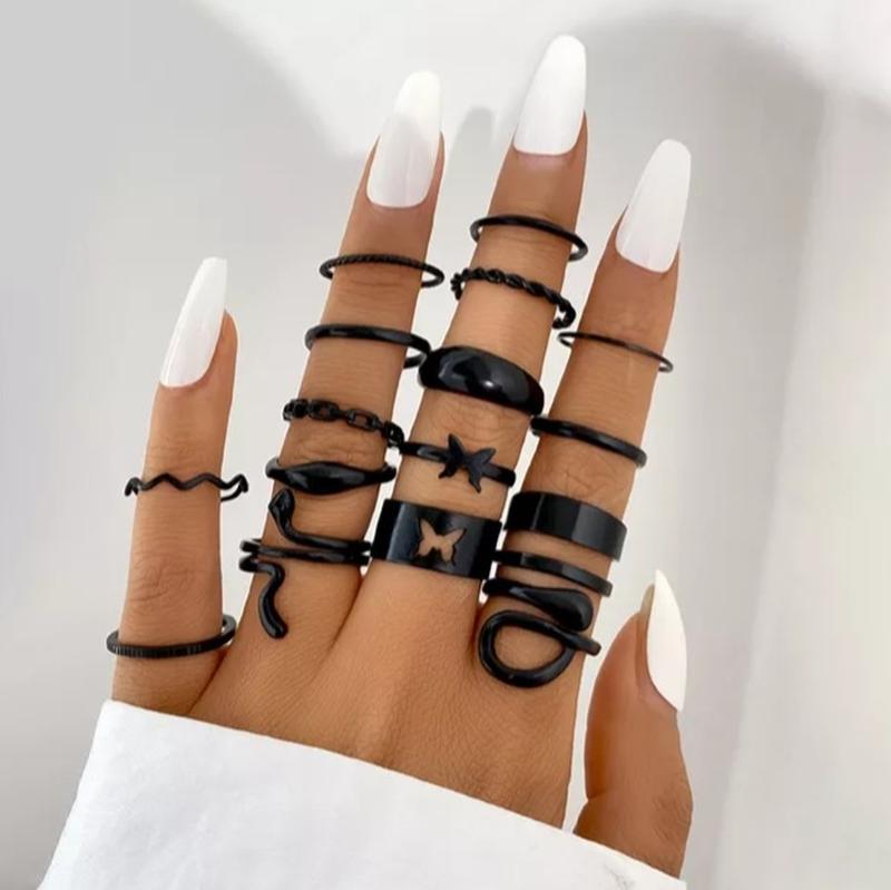 Набор колец. Цвет: черный. Размер: универсальный. Материал: сплав.