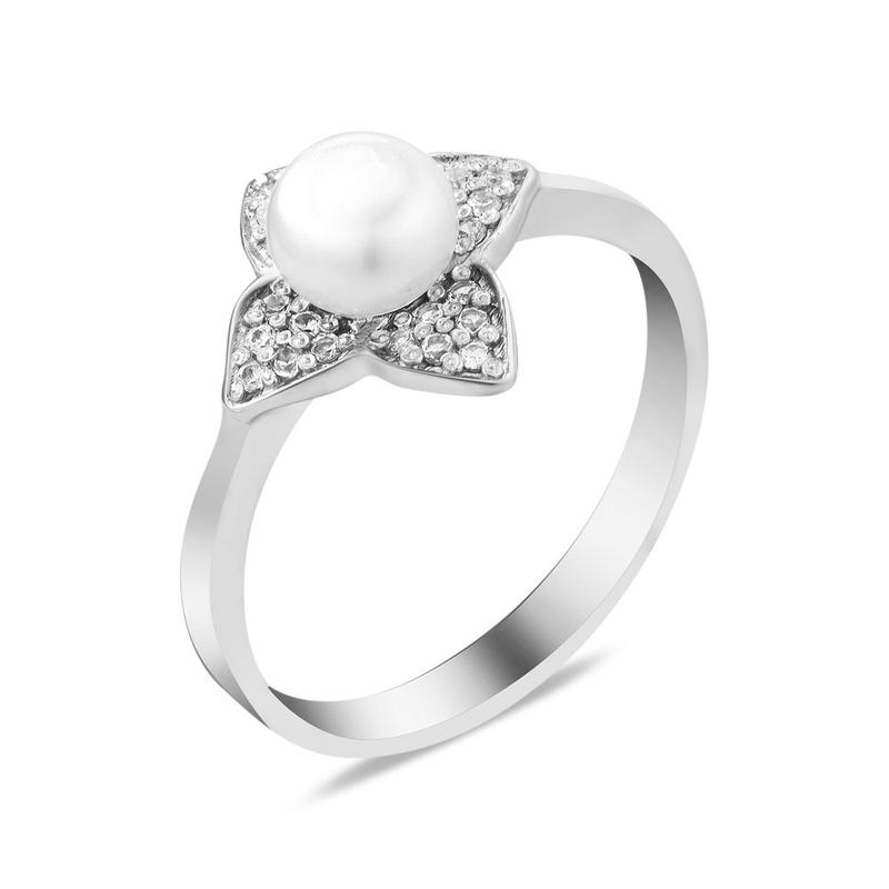 Женское серебряное кольцо со вставками билої перлини культивованої и фианитов
