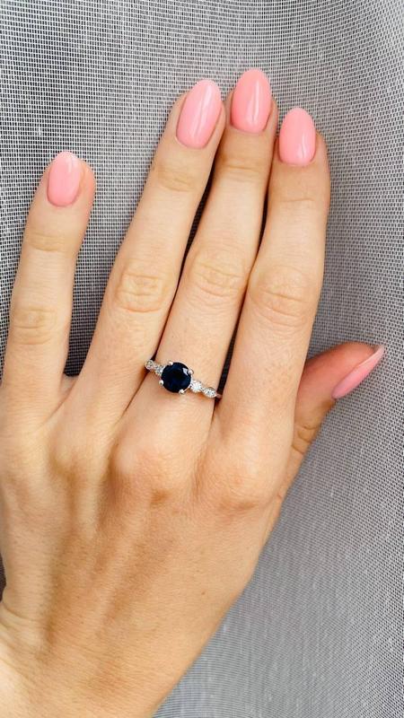 Жіноча срібна каблучка з вставками нано сапфіру і фіанітів