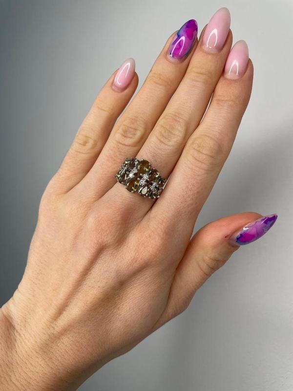 Жіноча срібна каблучка з вставками нано султаніту і фіанітів