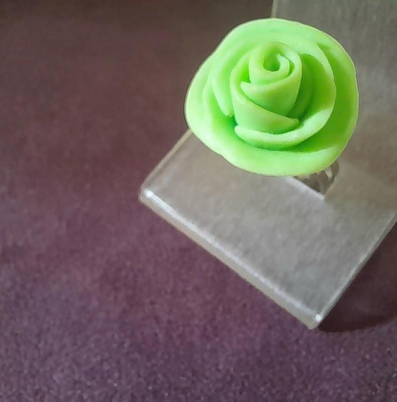 Кольцо с розочкой из полимерной глины безразмерное. Ручная работа.