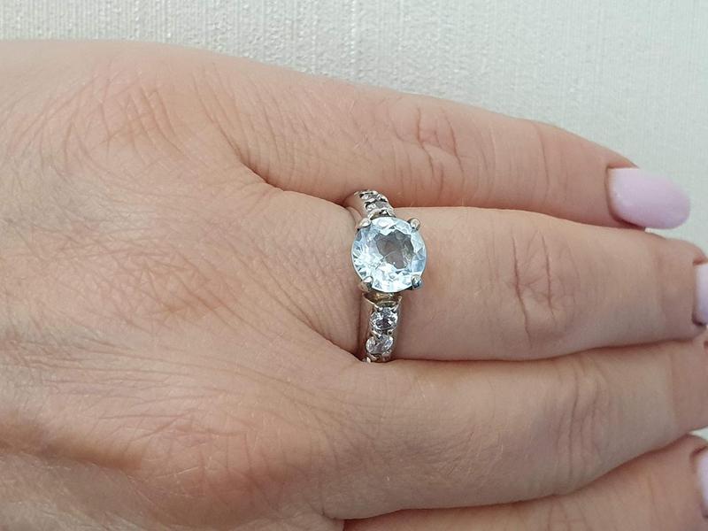 Серебряное кольцо 925 пробы с топазом и фианитами, покрыто родием Средний вес изделия - 3,57 г Вес конкретного изделия уточняется при подтверждении заказа