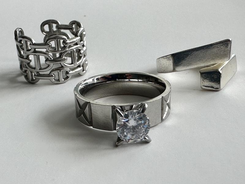 Колечко с камешками в размере 9, два других one size, можно корректировать под размер пальца. Цена за кольца с камешками - 120 грн, два других по 80