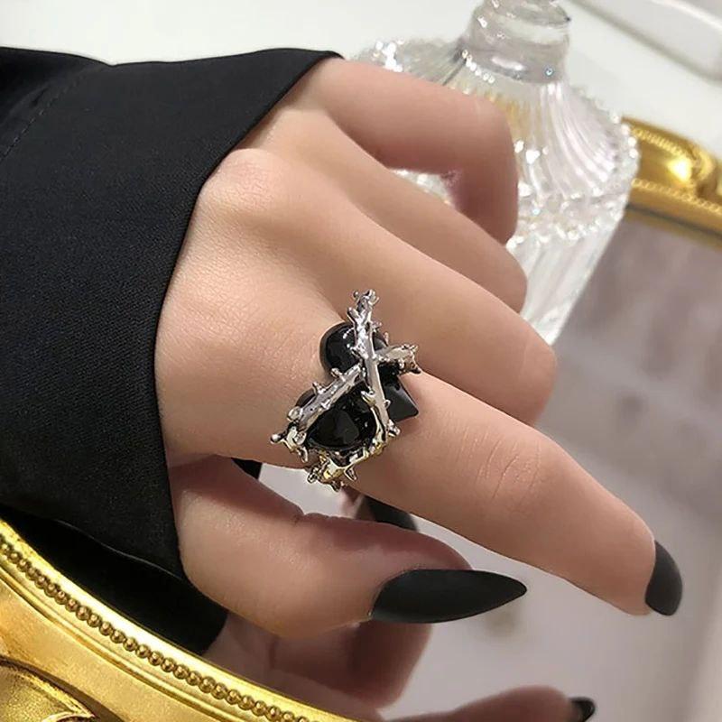 Колечко. Тип металла: цинковый сплав. Цвет: серебряный, черный. Размер 16 (регулируется). Код 4776.