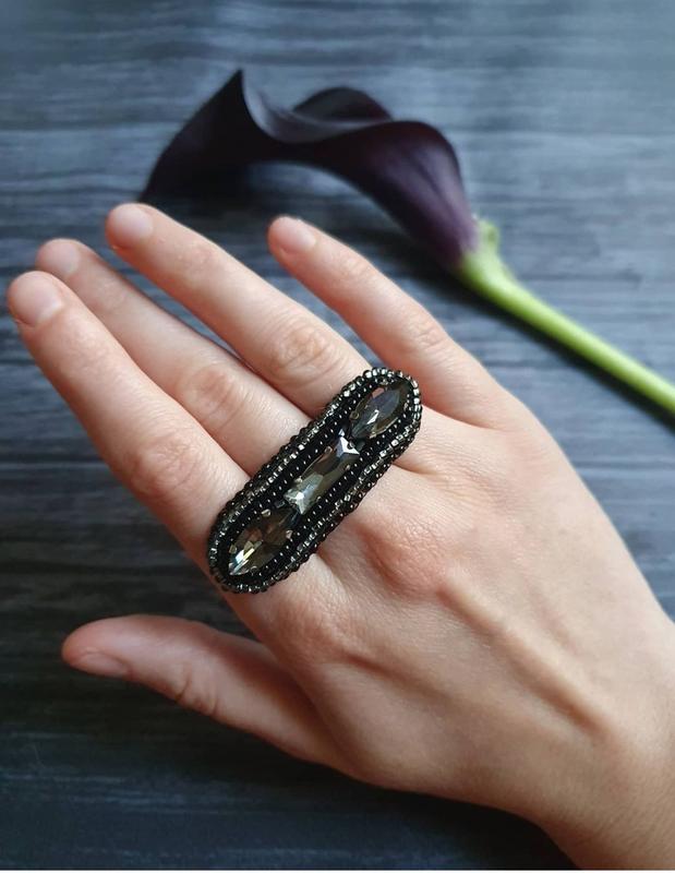 кольца прямоугольная, вышивка кристаллами и бисером, оборот - экокожа, размер регулируется