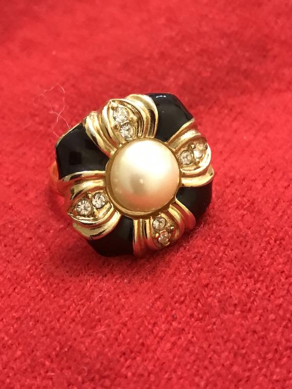 Каблочка с жемчужиной и кристаллами винтаж