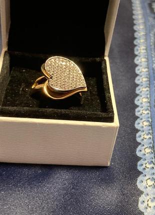 Кольцо в золотом тоне сердце усечено горящими кристаллами с эффектом АБ Размер 18
