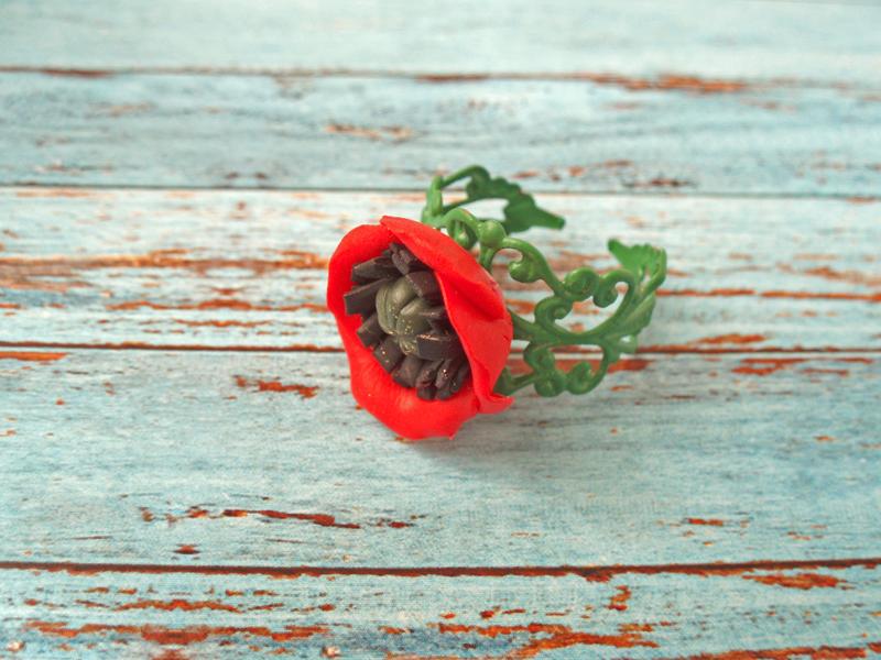 Колечко с маленьким цветком мака.Все изделия выполнены из полимерной глины премиум класса Cernit и Fimo,которая после лепки запекается в печи при определенной температуре.В следствии такой термообработки,изделие отличается повышенной прочностью,носкостью,не боятся воды,в отличии от самозатвердевающей глины.Такие украшения при выполнении условий хранения прослужат вам долго,и не потеряют внешний вид. Обмена и возврата нет. Пишите,отвечу на все вопросы)