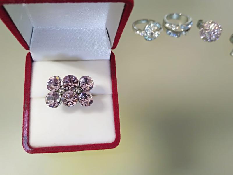 Кольцо с крупными бледно-сиреневыми стразами.