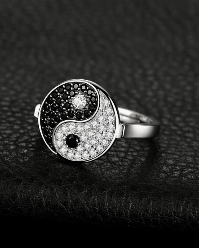 Кольцо "ень-янь", серебро, со шпинелью и цирконами, размер регулируется!