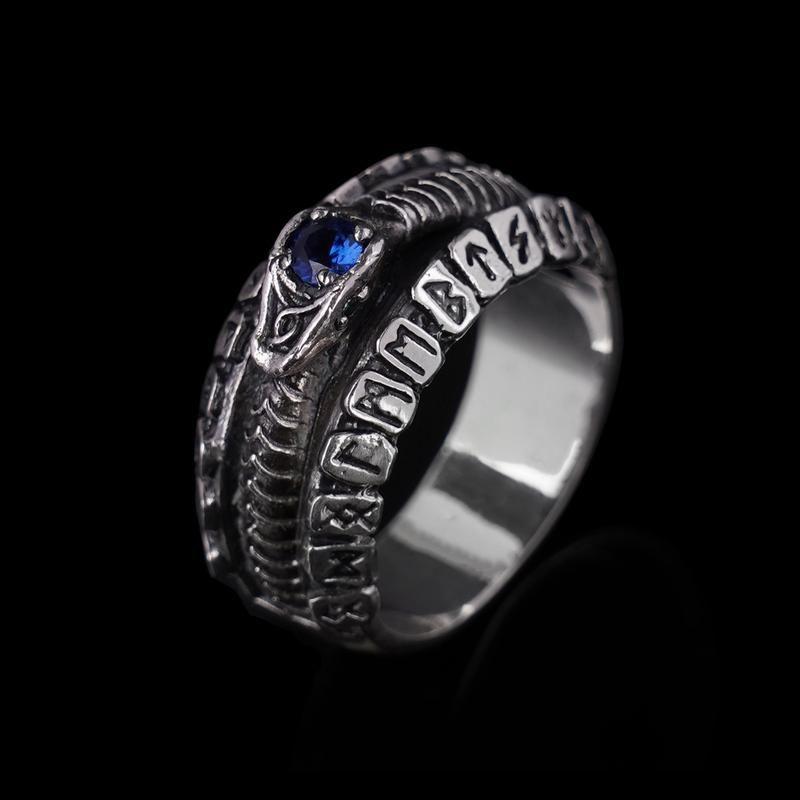 Уроборос - несмотря на то, что символ имеет множество различных значений, наиболее распространенная трактовка описывает его как репрезентацию вечности и возрождения. Символ уробороса имеет богатую историю использования в религии, алхимии, мифологии и психологии. Идея изделия олицетворяет в себе 4 стихии природы. Каждая из них представлена на кольце, а сам Уроборос, как 5-ый элемент- эфир, служит отражением всего нематериального в материальном. Камушек синий, что сверху - это вода. Красный камень, что внутри - огонь. 24 руны символизируют 24 части змея, что тоже представляет собой цикл перерождения и гармонии. Также руны, отождествляют стихию Воздуха. Поскольку, руны означают шепот (как вибрацию) Две змеи, которые вращаются вокруг внутреннего камня, символизируют Землю (физическая среда и материальный мир, поскольку он дуальный - змеи 2 шт) Характеристики: Материал: Серебро 925 пробы Вес: 12г. Камень: Сапфир и Гранат Дополнительные характеристики: Камни / вставки : Гранат Камни / вставки : Сапфир Материал : Серебро