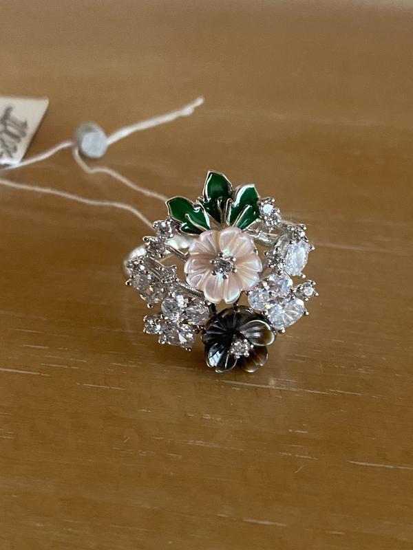 Вес 4.45. Размер 18. Цветы с эмалью и перламутром