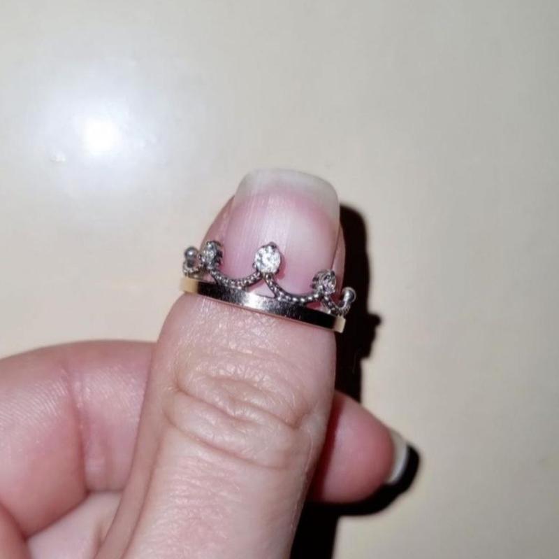 Серебряное кольцо 925 пробы с позолотой и фианитами в форме короны. Размер 16,5.