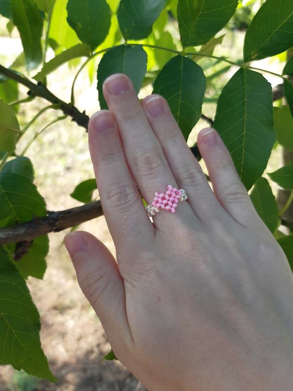 Кольцо из бисера колечко из бисера для девочек розовое колечко из сердце под заказ