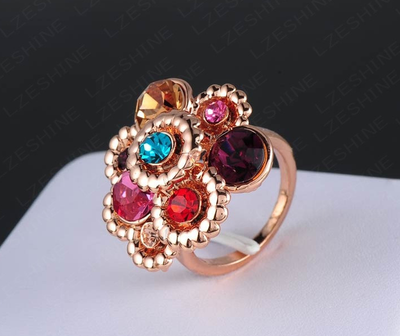 ип изделия: женское кольцо Материал покрытия: позолота нанесена три раза 18 К розовому золотоу Камень: Настоящей австрийской Кристал Марка: LZESHINE Марка ювелирных изделий Размер : 17,18, 19