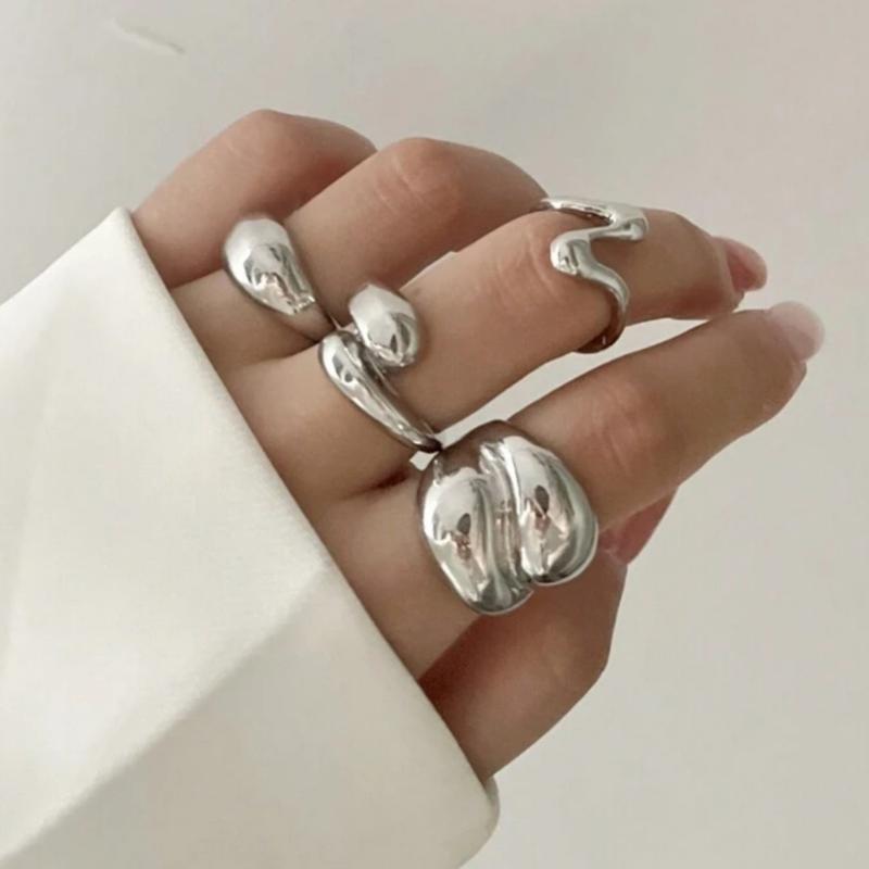Тренд набор колец 4 шт, массивные топ кольца с регулируемым размером