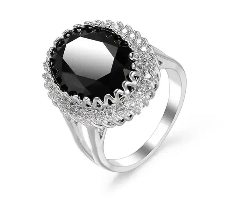 Срібляста каблучка з чорним каменем, розмір 18,19
