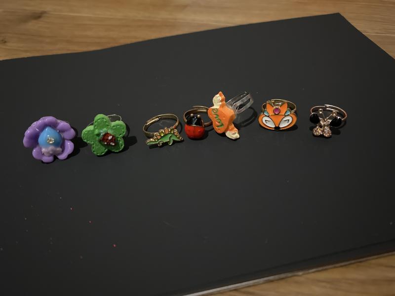 Колечка для девочки набором 50 грн позволяющий отдельно цветочки и сердечко с коровкой по 5 грн шт, динозаврик, лисичка и бабочка по 10 грн шт