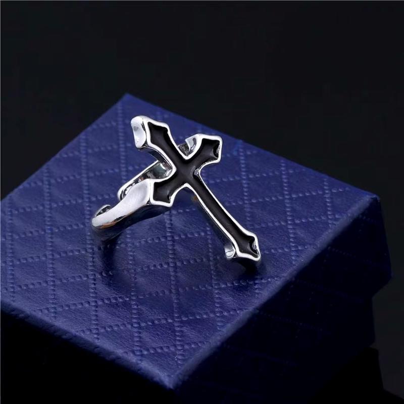 Кільце у вигляді Хрест з чорної емалі у стилі хіп-хоп панк готика. Регулюється. Унісекс. Матеріал: цинковий сплав
