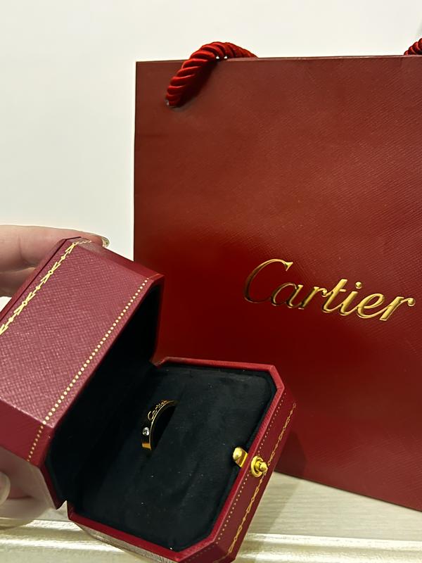 Колечко Cartier 17-17,5 размер Желтое золото Премиум версия Серебро в позолоте, проба AU750 Премиум упаковка : кофр, коробка, шкатулка, сертификат, пакет