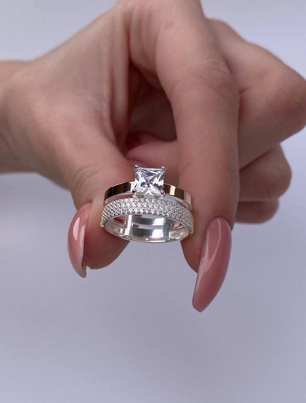 серебро 925 пробы с напаяными пластинами золота 375 пробы 19 размер