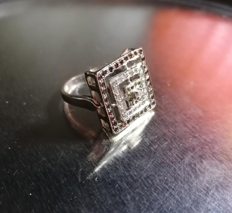 Размер 17 - 17,5. Серебро 925. Вставки фианиты.. В очень хорошем состоянии.