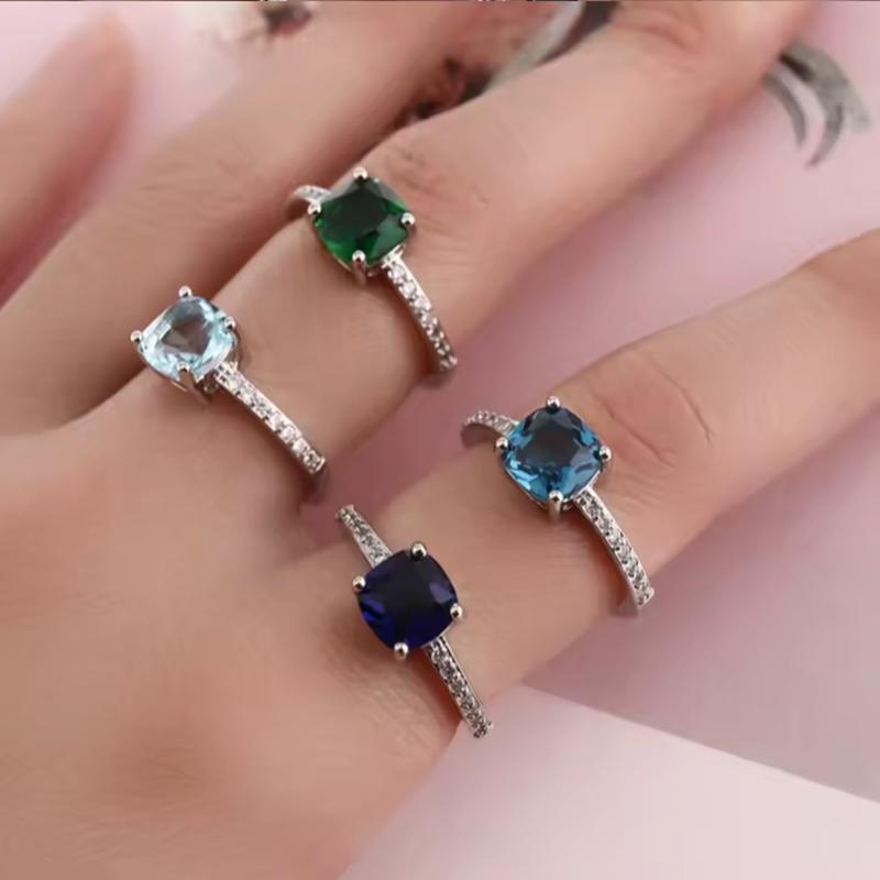 Колечко с цветными камушками. Есть с зеленым (нагадывает изумруд), и есть с синим камнем (нагадует сапфир. Также по периметру колечко усыпано маленькими белыми фионитами. Есть только в 17 размере.