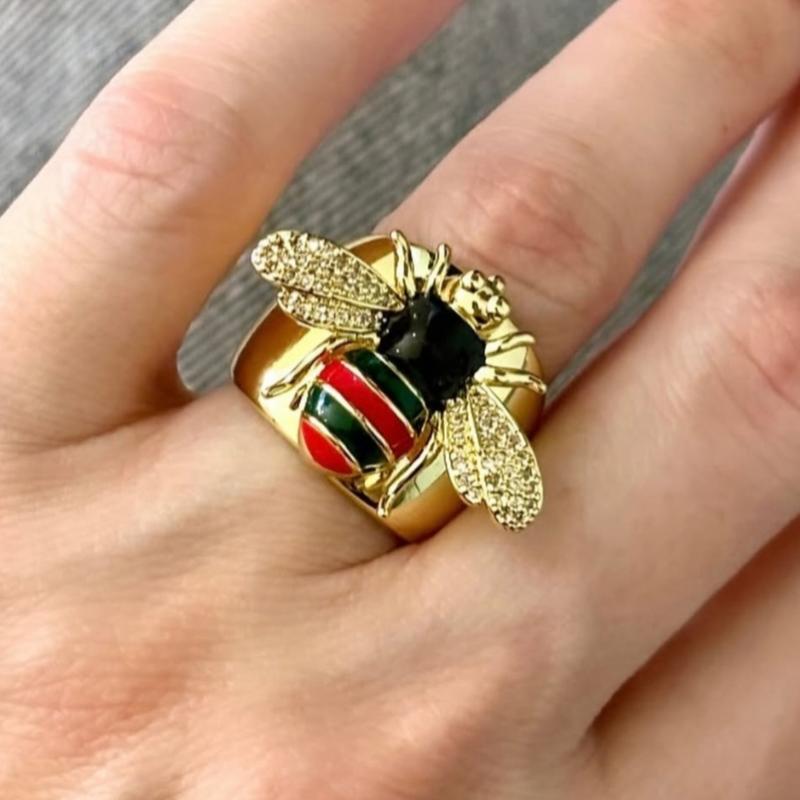 Каблочка под золото. Пчелка в камушках с эмалью. Не запаянное, размер 17-18.