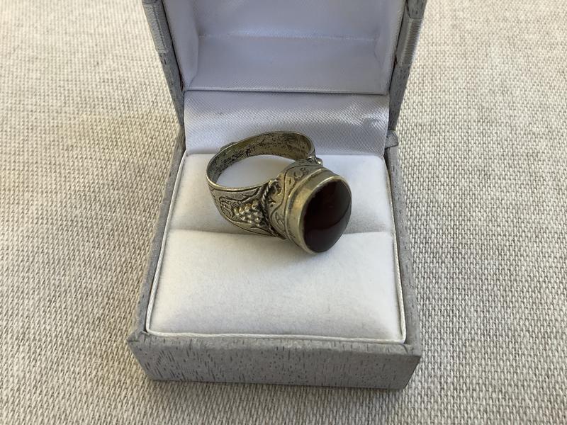 Каблочка винтажная, натуральный камень, металл. Размер 18. Цвет камня шоколадный с бордовым оттенком.