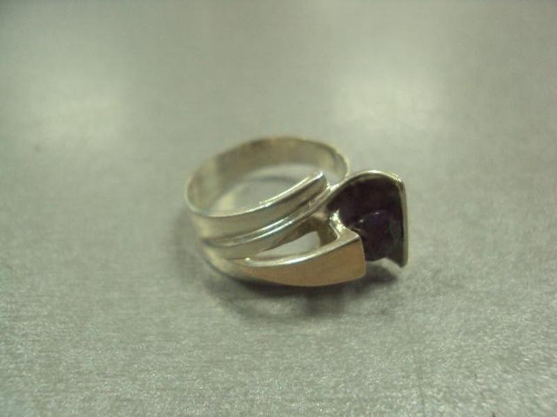 кольцо женское с золотой пластиной 585 проба серебро 875 проба украина вес 7,71 г, размер 20 №107