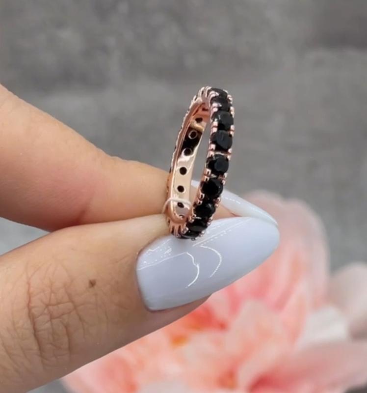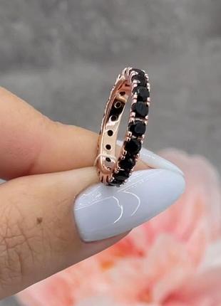Серебряная кольца Черный блестящий рядочек в позолоте Артикул 055-22977 Материал: Сплав с покрытием 14К розовым золотом Проба: ALE MET Вставка: кубический цирконий