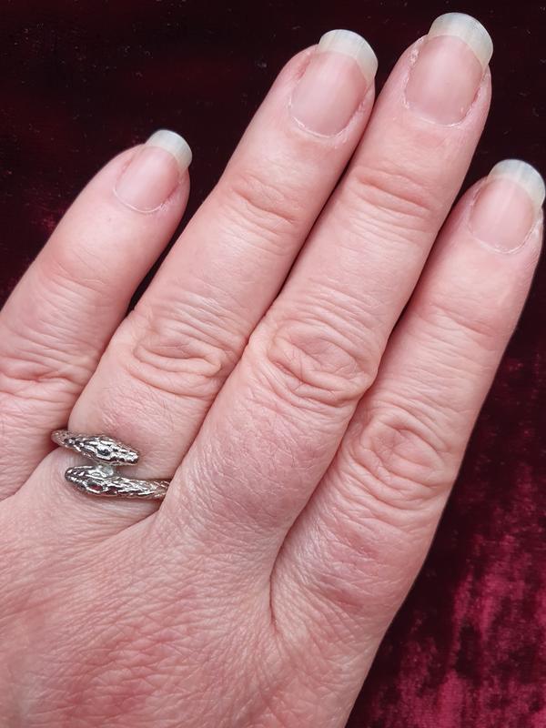 Кольцо в серебряном цвете в форме двух змеек. Размер 17. Есть незначительные потертости. В целом состояние хорошее. Замеры на фото. Все фотографии актуальны. Вы получаете товар указанный в объявлении и на фотографиях. Продажа производится только после 100% оплаты на карту, только после этого отправляю товар по почте.