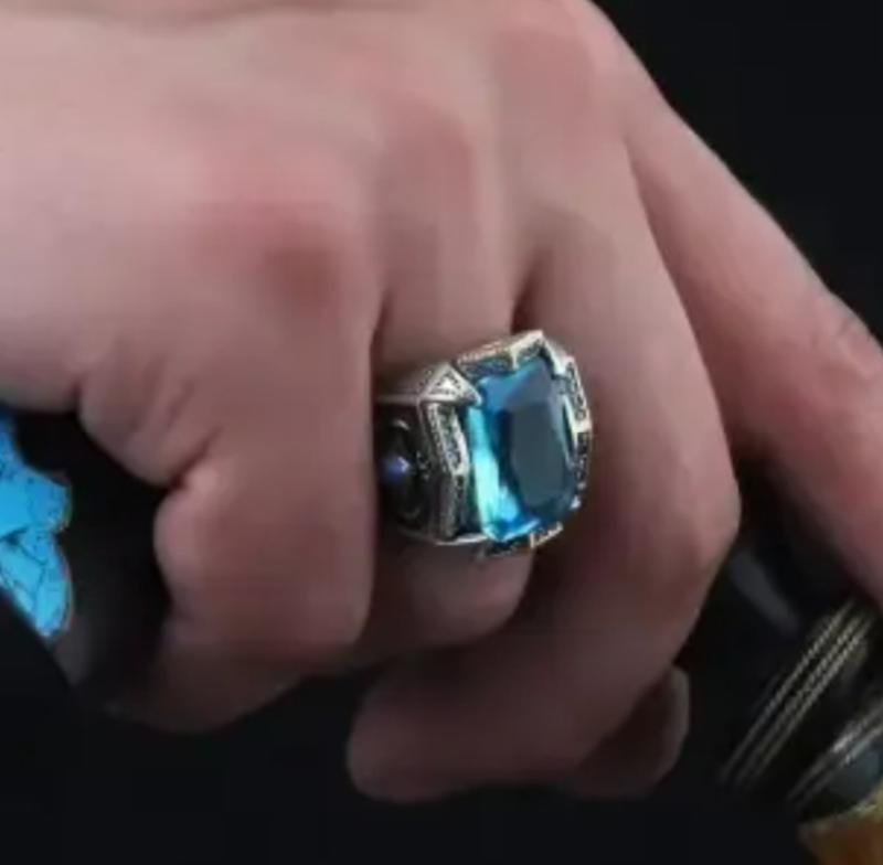 кольца серебристого цвета с голубым камнем, размер 18, 19