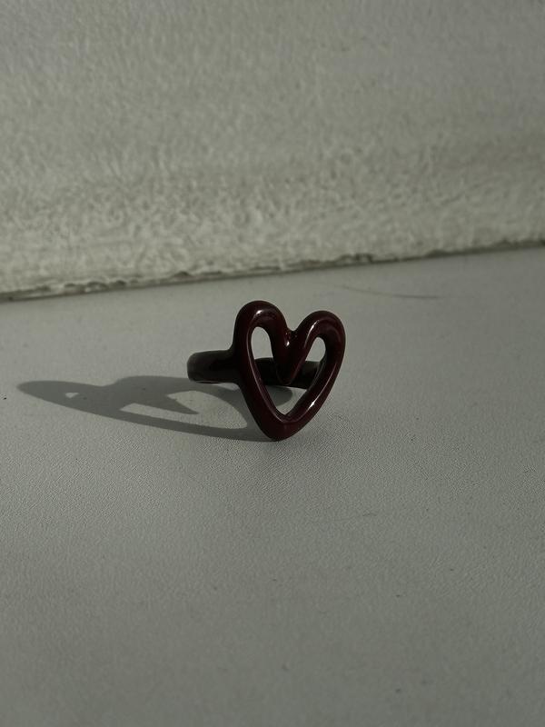 Каблучка коричнево-червона з сердечком розмір регулюється
