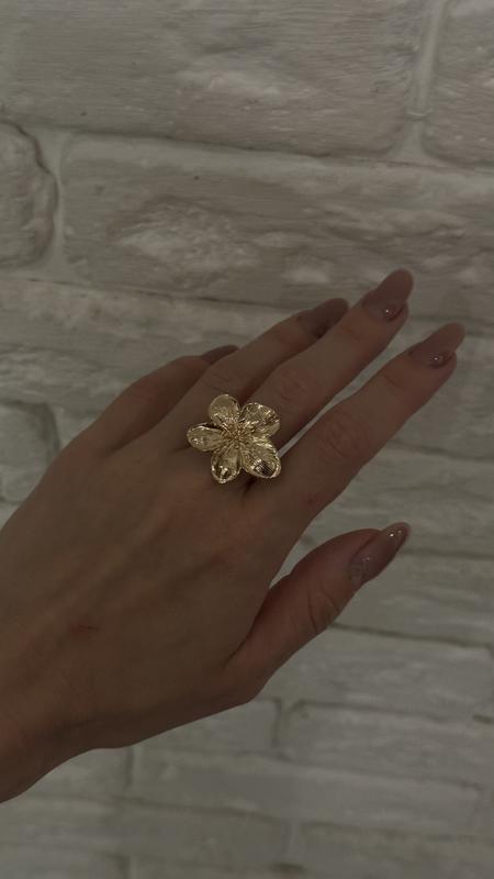 Каблучка квітка, біжутерія, під золото, розмір регулюється