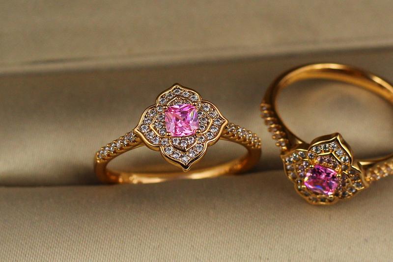 Кольцо xuping jewelry восточный ромб с розовым камнем р 18 золотистое