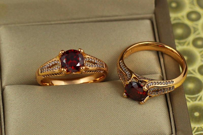 Кольцо Xuping Jewelry вишневый аромат с красным камнем золотистое размер 18 высота 7 мм