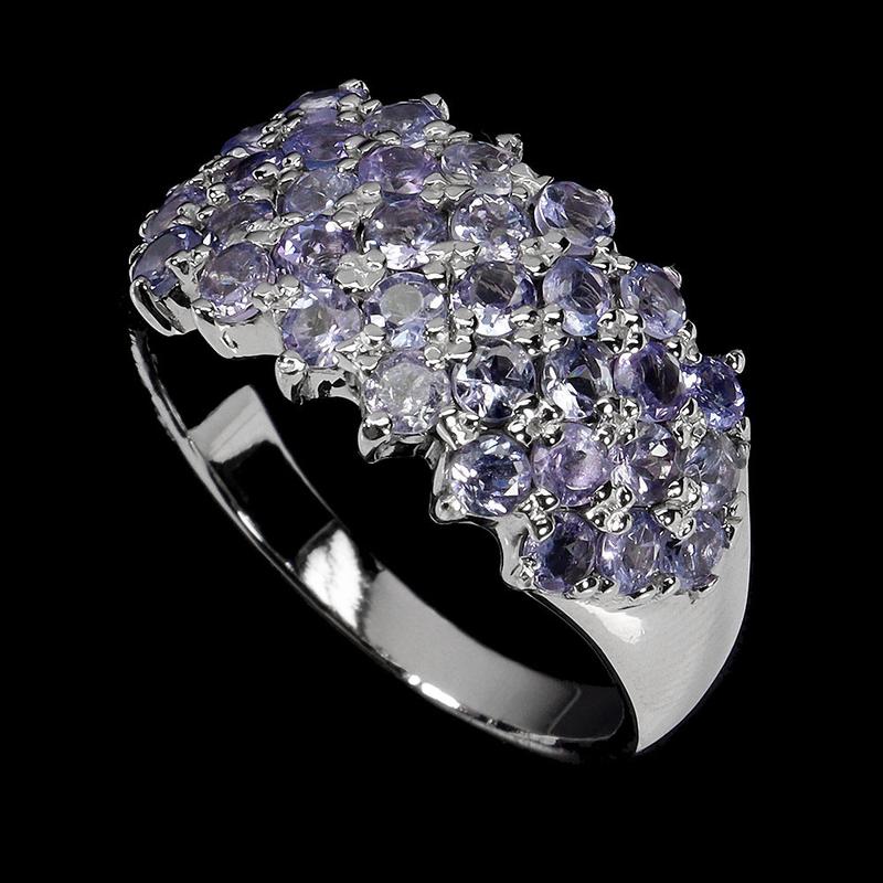 Серебряное кольцо покрытое белым золотом с натуральным танзанитом. Камни - размер Ø2,5 мм. Кольцо - размер 19; размер анфас 12*25 мм.; вес 4,89 гр.; серебро проба 925; золото проба 585. Название «танзанит» минерал получил по месту находки -- Танзания. Другое название танзанита -- синий цоизит. Окраска минералов синяя, густо-фиолетовая. В зависимости от угла обзора цвет кристаллов голубой, пурпурный, коричневато-желтый. Кристаллы -- прозрачные. Блеск -- стеклянный. Единственным месторождением танзанита плато Мерелани (Танзания). В других странах этот минерал не обнаружен. Народные целители рекомендуют для снятия нервного напряжения и улучшения зрения в течение получаса всматриваться в минералы голубой окраски. Танзанит облегчает течение простудных заболеваний, снимает приступы лихорадки. Минерал используют для лечения кожных заболеваний. Изделия из танзанита улучшают цвет кожи, избавляют от подростковых прыщей. Литотерапевты утверждают, что танзаниты можно использовать и для лечения различных заболеваний позвоночника. Танзанит влияет на лобную чакру. В Америке танзанит считают символам достатка и счастья, рекомендуют дарить этот камень супругам, прожившим вместе 24 года. В странах Европы чародеи предлагают носить украшения из танзанита, чтобы удача в коммерческих делах не покидала их хозяев. Украшения с танзанитом привлекает внимание противоположного пола. Талисманы и амулеты: танзанит талисман людей, стремящихся к обогащению и семейному счастью. Талисманом может быть любое изделие из танзанита. Перстни с танзанитом способны притягивать купеческое счастье. Подвески или кулоны из этого камня помогают их владельцу обрести счастье в личной жизни, сохранить мир и покой в семье на протяжении многих лет.